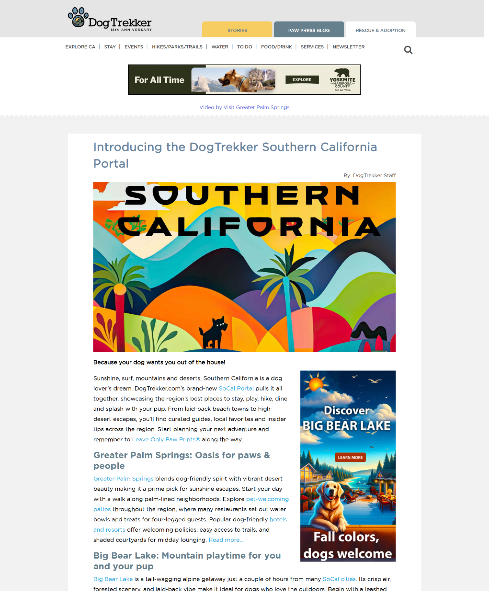 DogTrekker is a dog-centric platform offering travel information, guides, and listings for dog-friendly destinations in California. With thousands of listings and stories, it connects dog owners with places, experiences, and helpful content. Their goal was to create a more engaging, informative, and user-friendly site.